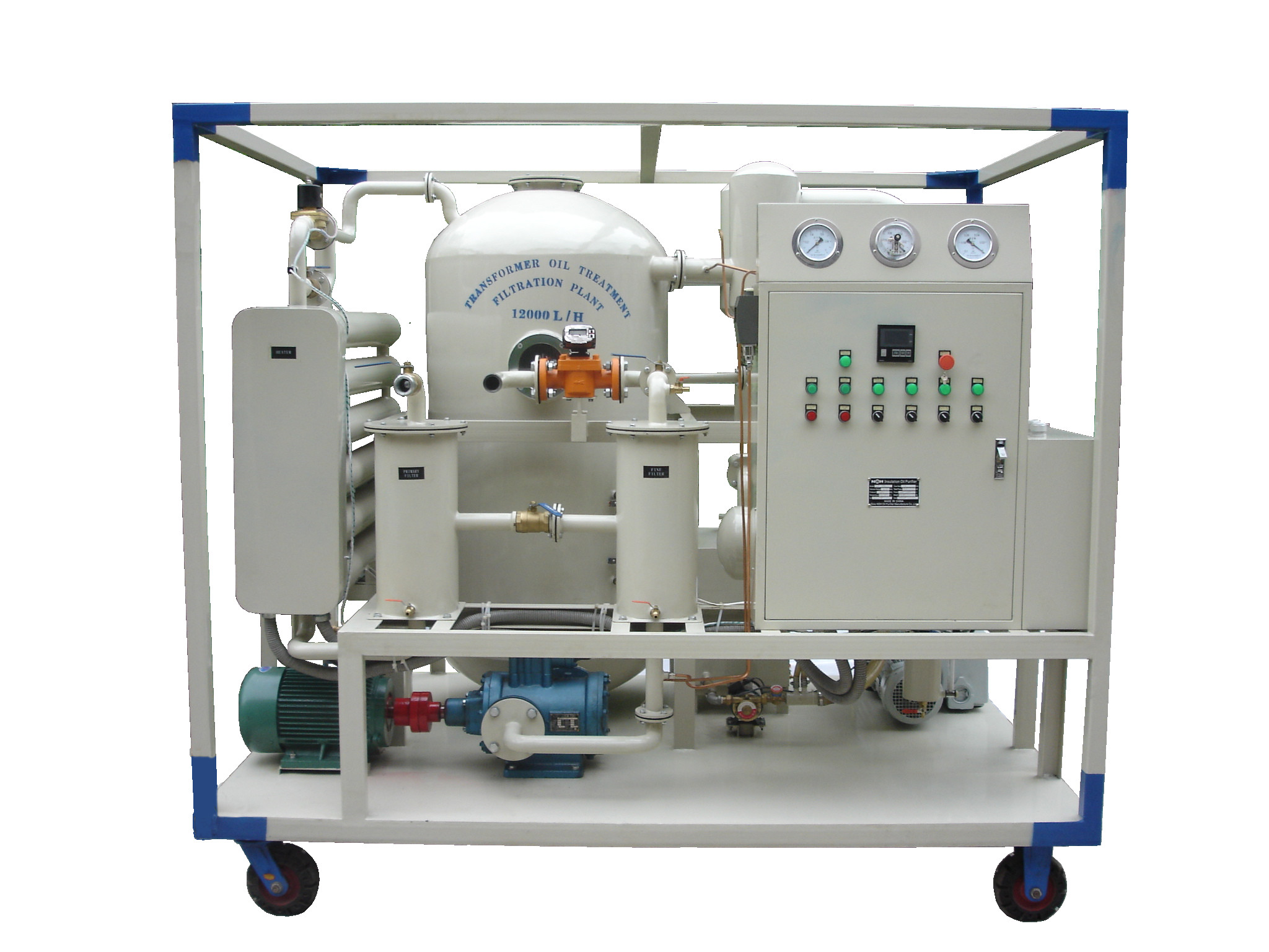 NSH 절연제 기름 정화기는 각종 변압기의 임명 그리고 정비 도중 기름 정화, 진공 건조 및 기름 충전물 기계에서 널리 이용됩니다. 단 하나 단계 진공 기름 여과 기계와 비교해, 이 기계는 뿌리 펌프 체계, 이차 높은 진공 별거 체계 및 3차원 저속한 급속한 증발 체계를 추가합니다. 탈수함의 기능으로, 기체 제거, de 아세틸렌, 비산화 가치는, 자유로운 탄소를 제거해서, 변압기 기름의 고장 가치 (BDV)를 개량하고.